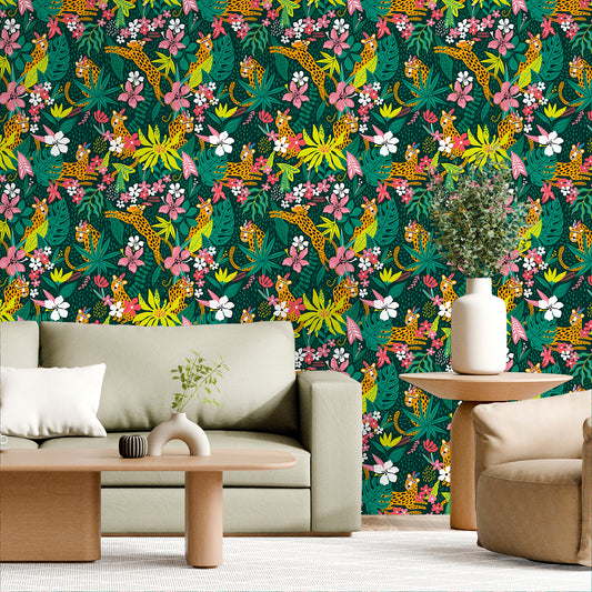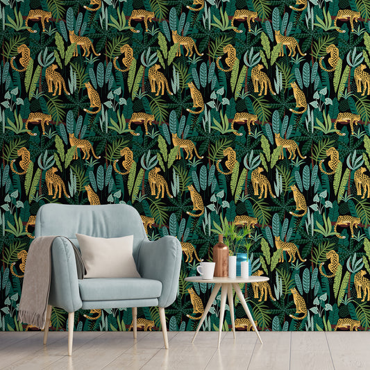 Green Leaf Leopard King Peel and Stick Wallpaper