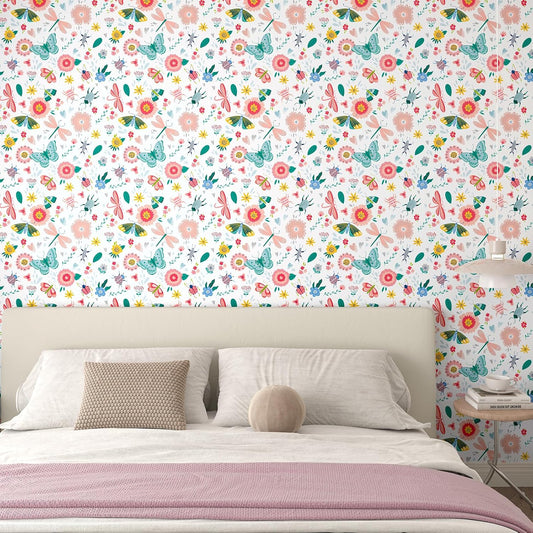 Green Peel & Stick Vintage Floral Bird Wallpaper
