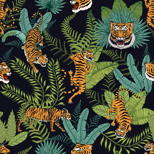 Tropical Forest Tiger Floral Wallpaper