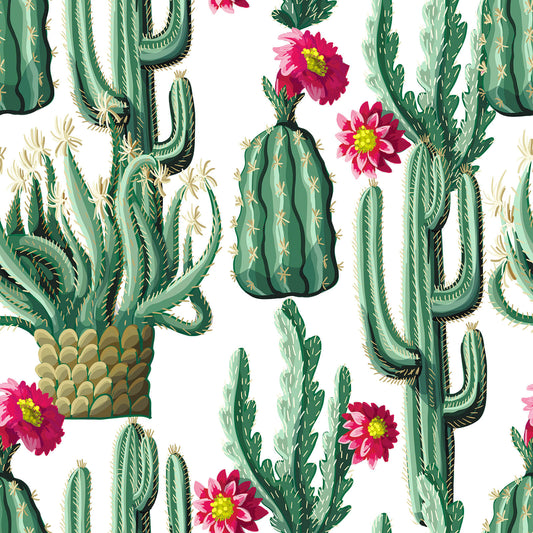 Green Cactus Floral Wallpaper