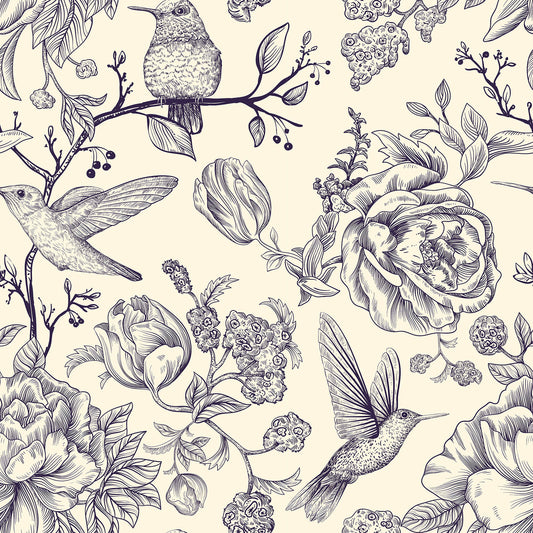 Purple Birds Floral Wallpaper