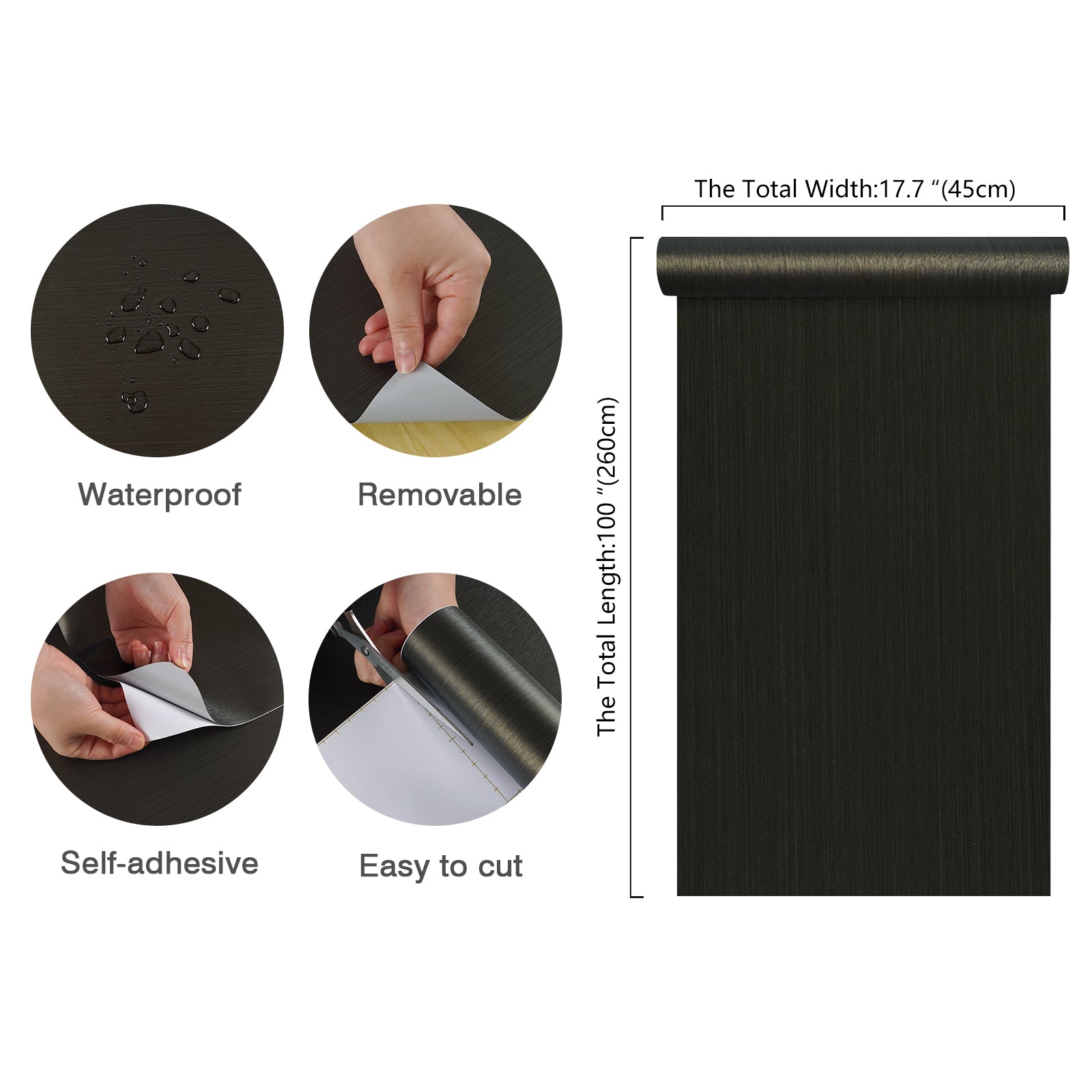 - 【Feature】Designed for moisture-prone areas like kitchens and bathrooms, this bronze black stainless steel contact paper is waterproof and heat resistant, ensuring long-lasting quality. It is also oil-proof, easy to clean, rust resistant and eco-friendly, making it a perfect choice for renovating old furniture and providing long-term usage with strong coverage that won't easily fall off