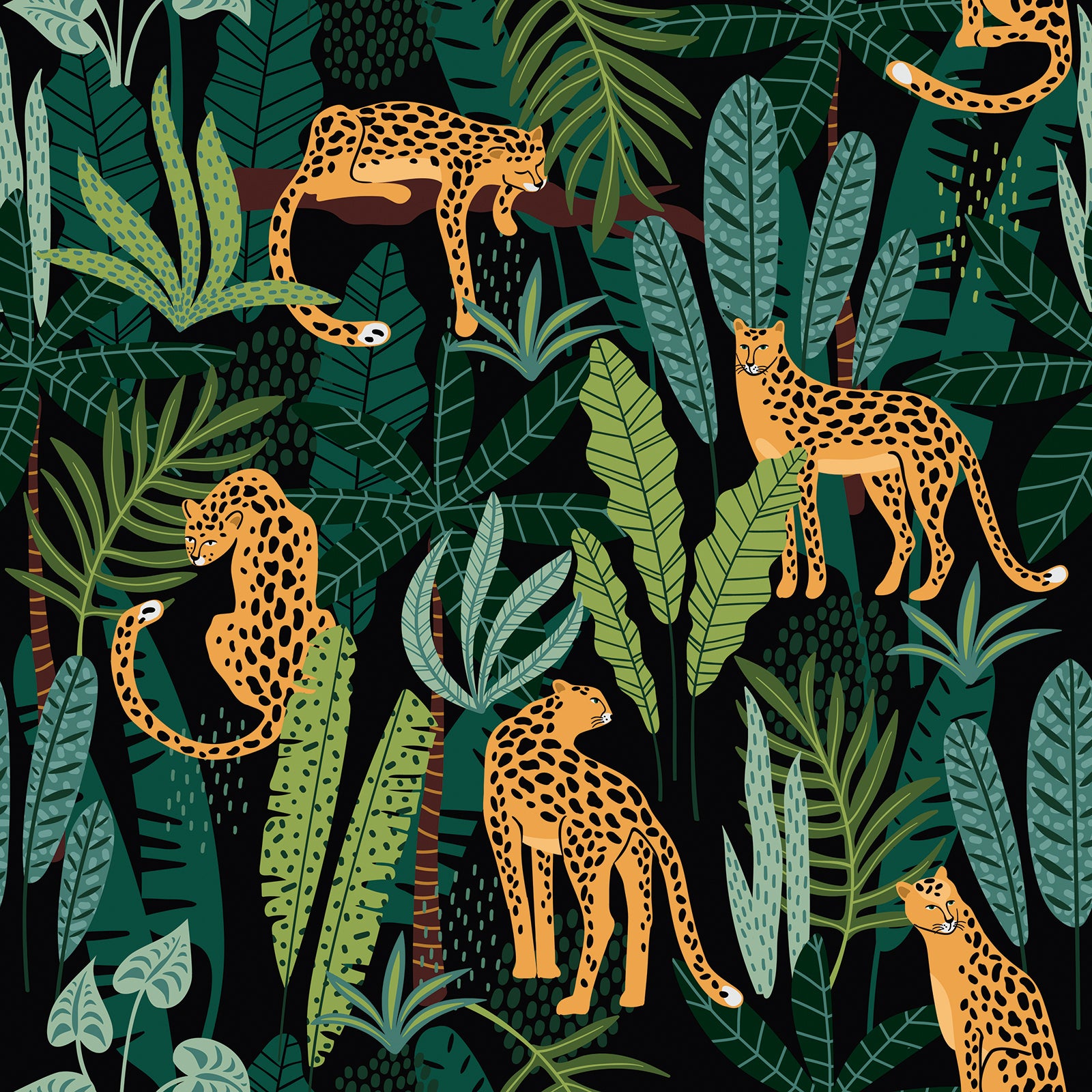 Green Leaf Leopard King Peel and Stick Wallpaper