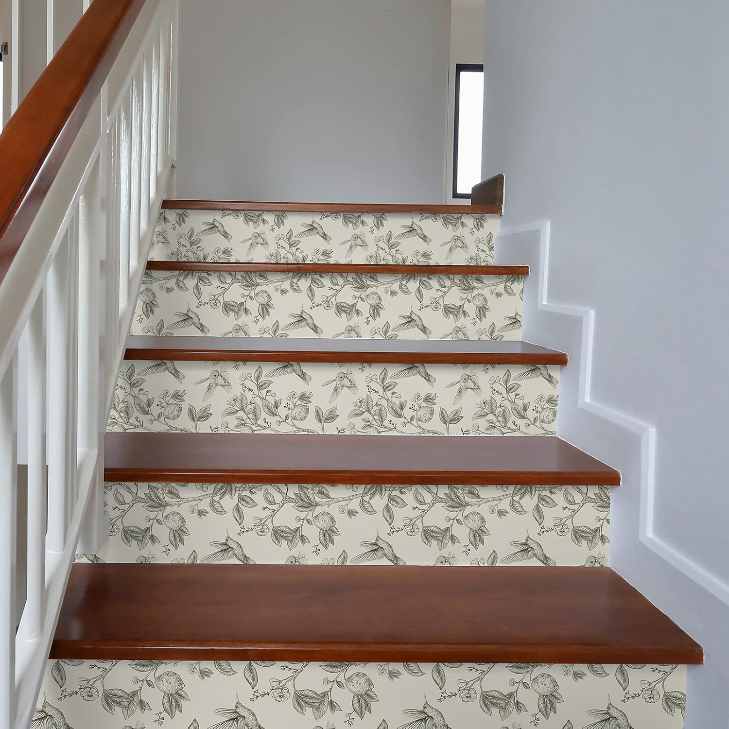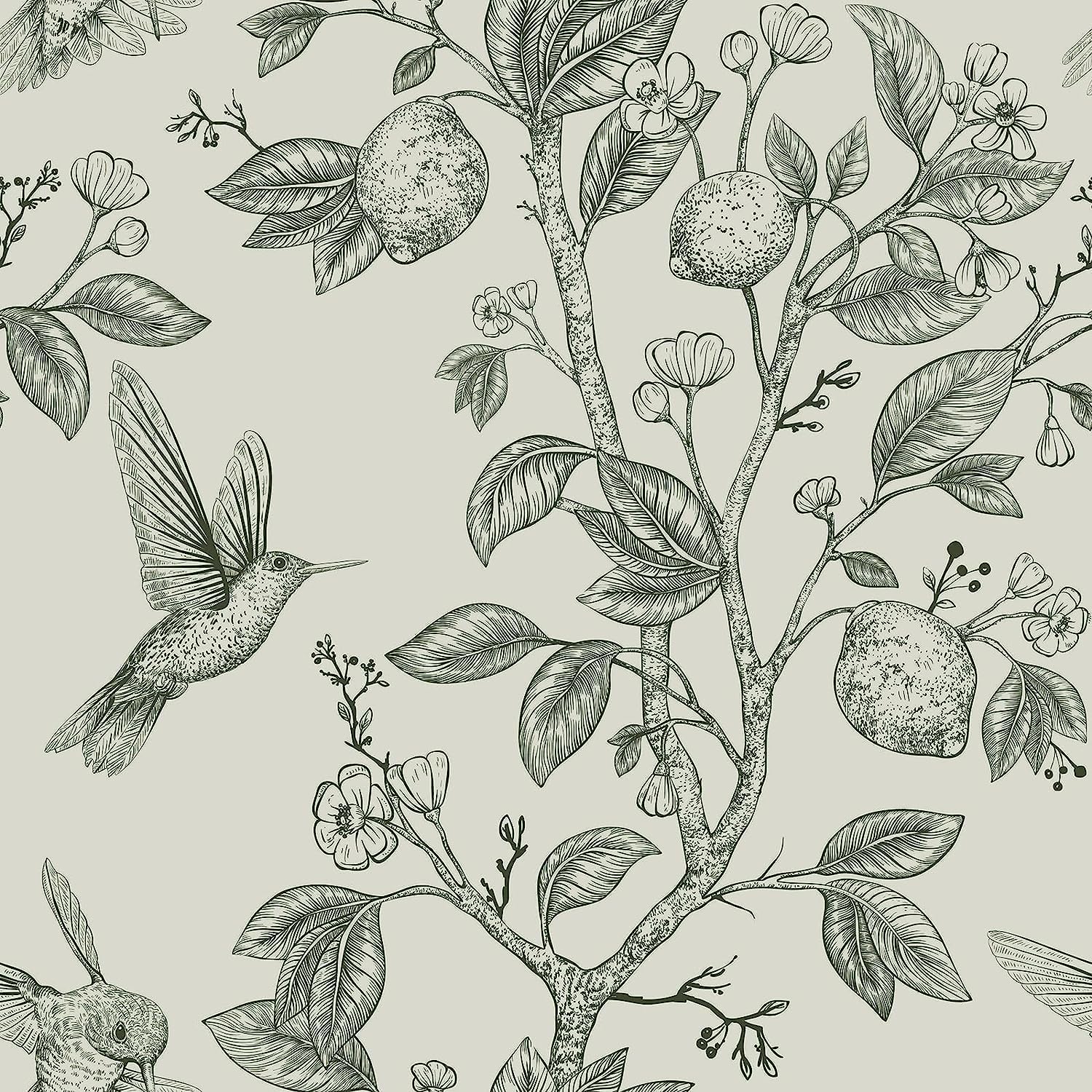 Green Peel & Stick Vintage Floral Bird Wallpaper