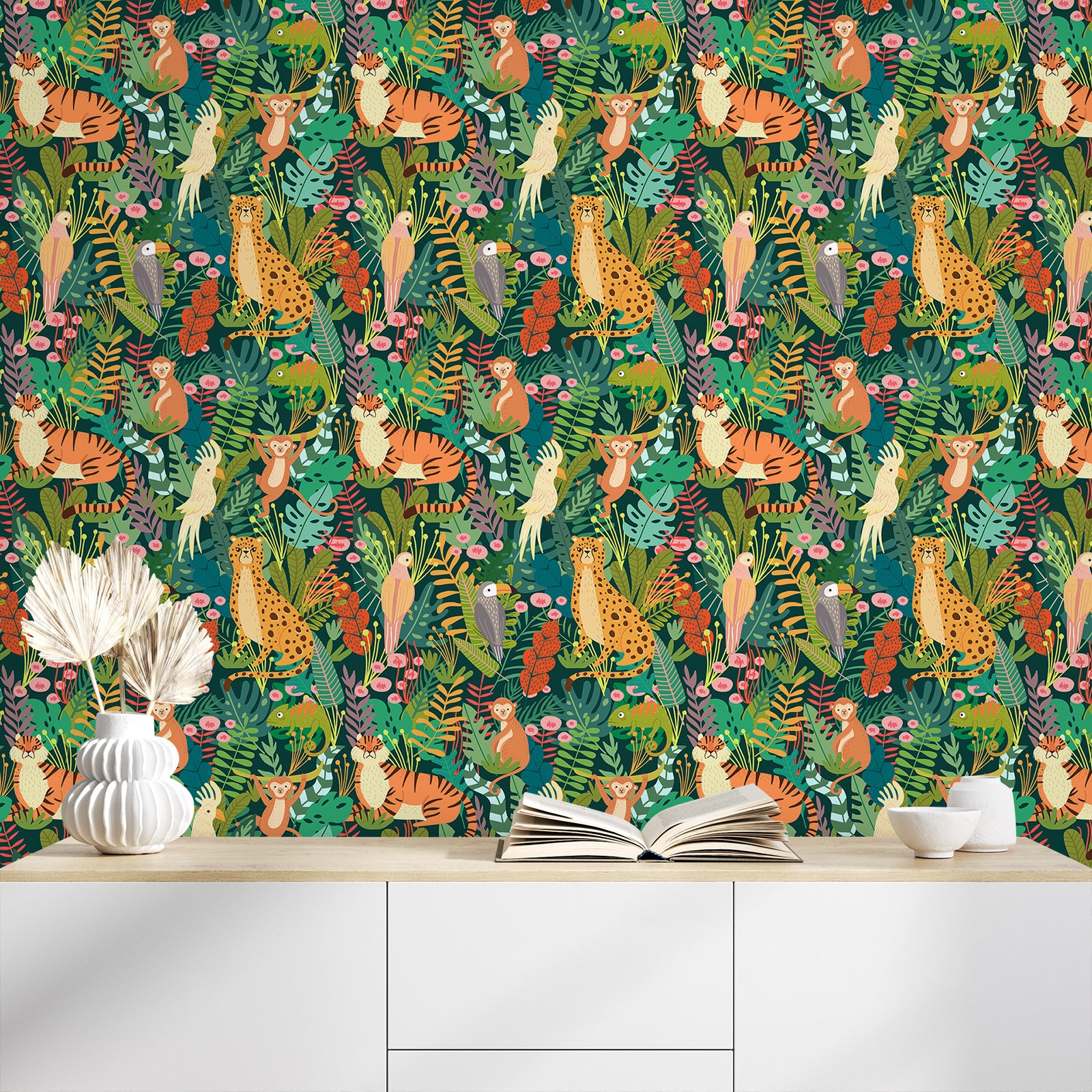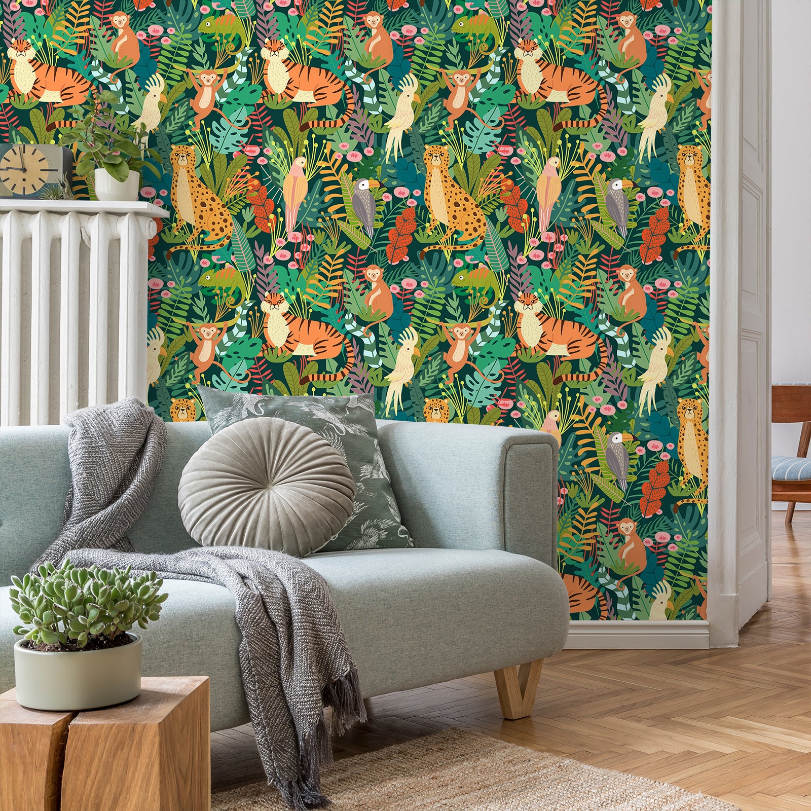 Jungle Animals Nursery Floral Wallpaper