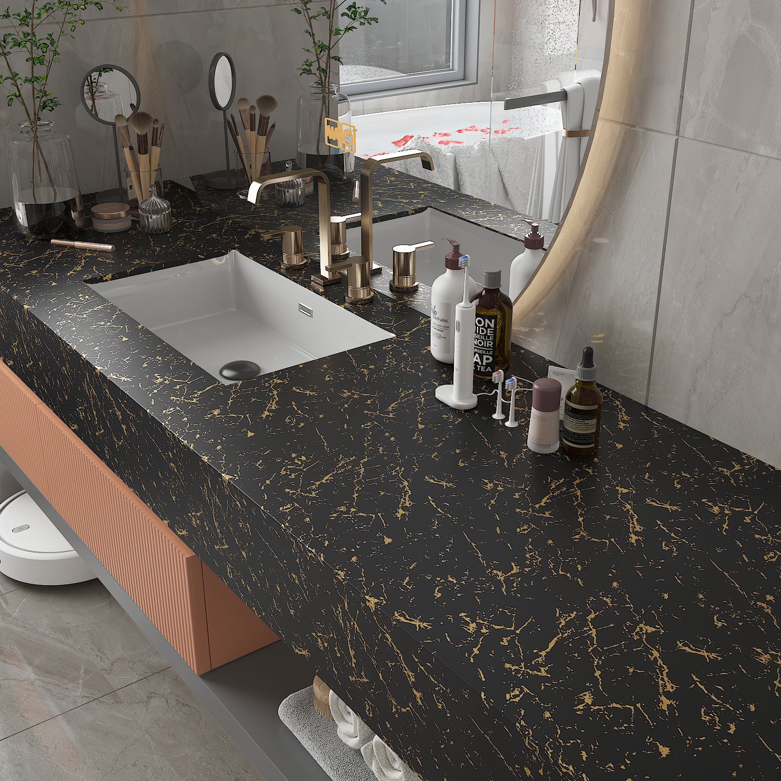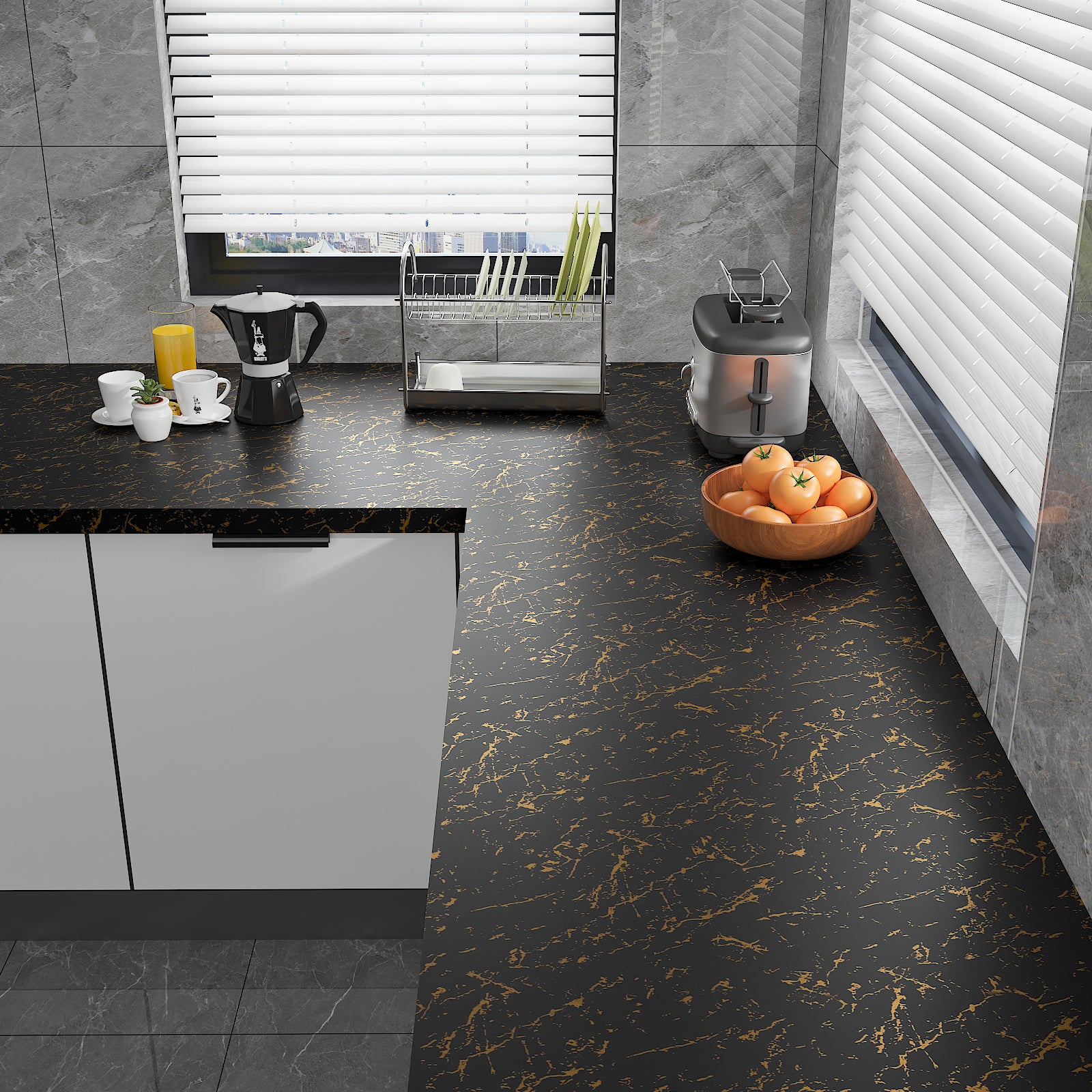 - [Marble Contact Paper for Countertops - Waterproof Matte Black Gold Wallpaper]