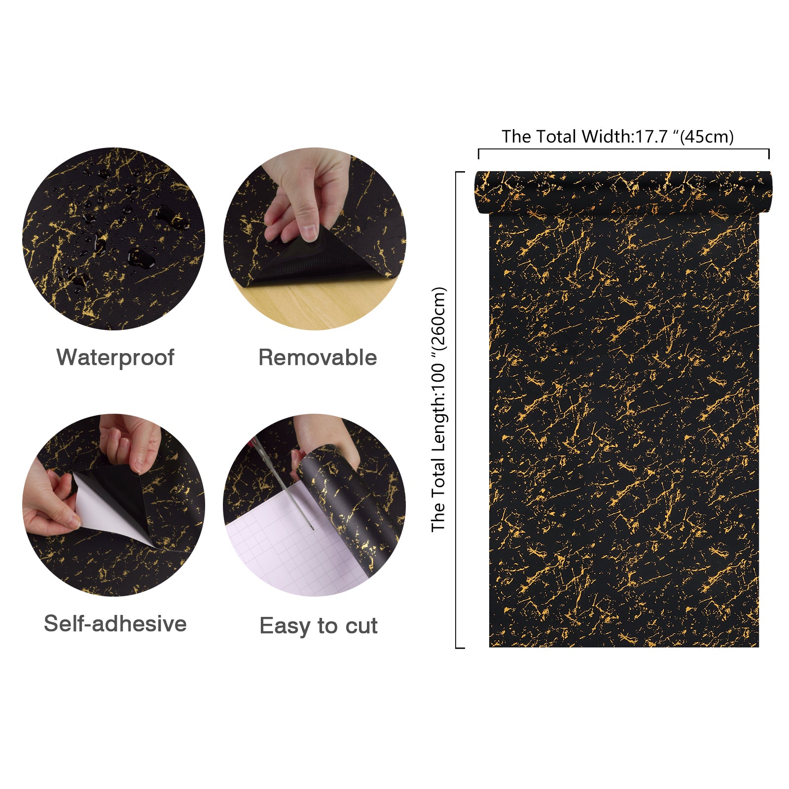 - 💎 【Size & Material】 Experience the luxurious beauty of matte black gold marble wallpaper, adding elegance to any room. Dimensions: 17.7 inches x100 inches, covering 12.5 square feet per roll. Material: Vinyl peel and stick wallpaper