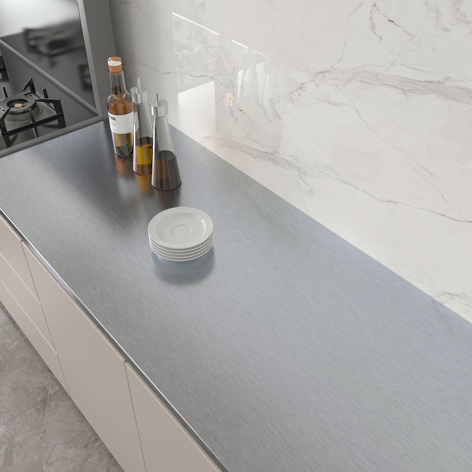 - THICK AND STRONG ADHESION- Our grey stainless steel wallpaper is waterproof, oil-proof, heat resistant, rust resistance, tear-resistant, scratch resistant, providing protection against surface erosion. Measuring lines on the back allow for easy customization to any desired size