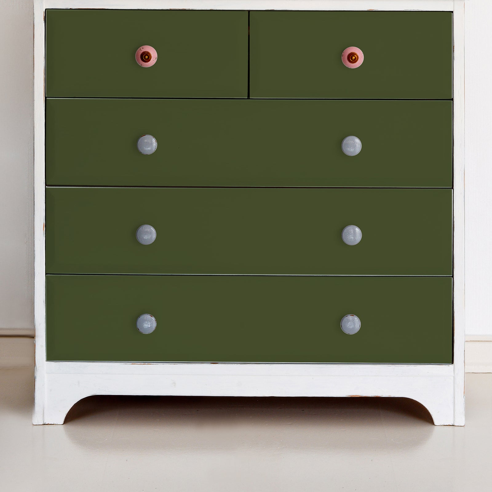 - [MATERIAL AND SIZE] - The olive green wallpaper size is 17.7 inches by 100 inches, and one wallpaper roll can cover 12.5 square feet. Green peel and stick wallpaper is made of premium vinyl, air bubbles free, long-term use